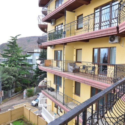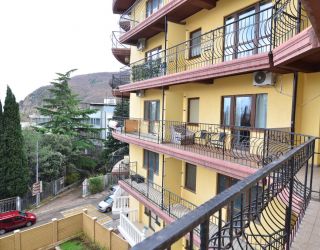Поездом до ж/д вокзала г. Симферополь, далее на троллейбусе №52 до остановки «Партенит», далее на маршрутном такси №1 до остановки «Автостанция Партенит», далее 410 м до апартаментов.